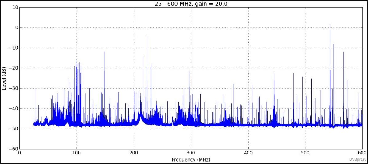 Вниз мин -50дБ с шагом горизонтальной сетки 10 дБ.