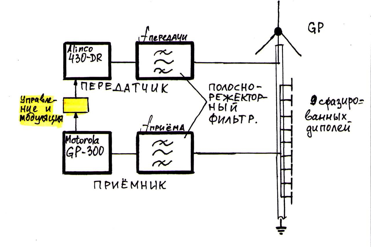 На приём установлено 9 сфазированных диполей. Станция Motorola GP-300.