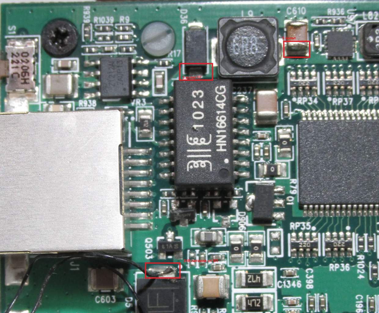 Спасибо. По первому фото, на детали D5 24v, D36 0v, С610 0,7v. В трансформаторе HN16614CG дело?