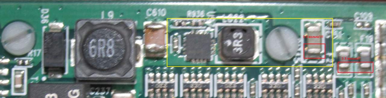 на дросселе по 5 вольтам КЗ нет, сопротивление переходит в Мегомы. усилители промаркированы как U4 и U5 , проверите дроссели на них , это L801 , и верхний прям возле мс усилителя.