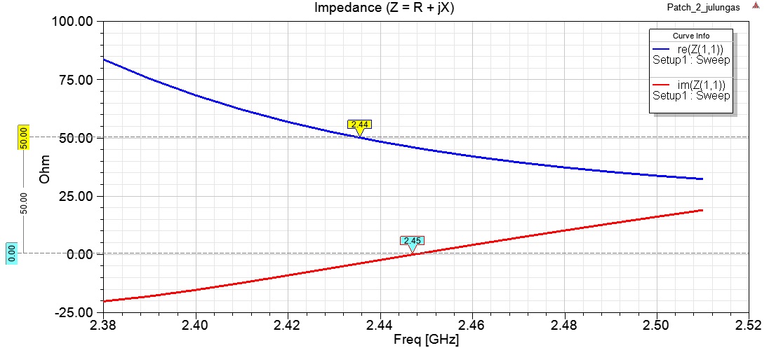 Если ставлю 95 мм, то Z=96+j0 на 2420 МГц, КСВ>2.5