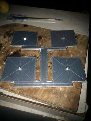 Вторую антенну размечать не стал (уж больно времени разметка занимает), просвердил отверствия в первой заготовке, наложил на лист, и в нем тоже просверлил отверствия, стянул все болтиками М3.
