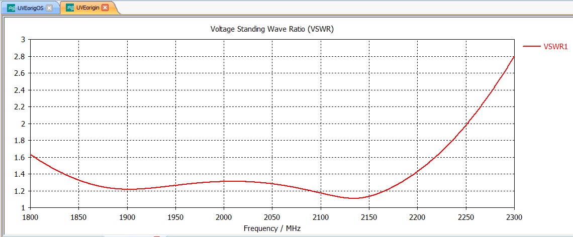 Если Вы желаете получить КСВ на рабочих частотах не выходящий за границы 1,5 то в этой конструкции и в варианте с эллиптической поляризацией необходимо отнести точку питания на 27 мм. и провести оптимизацию проекта по мин. КСВ. Переменные размеры дисков с шагом в 1 мм и зазор между дисками в 1 мм. Этого достаточно.