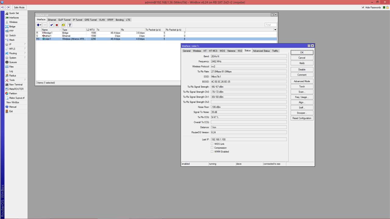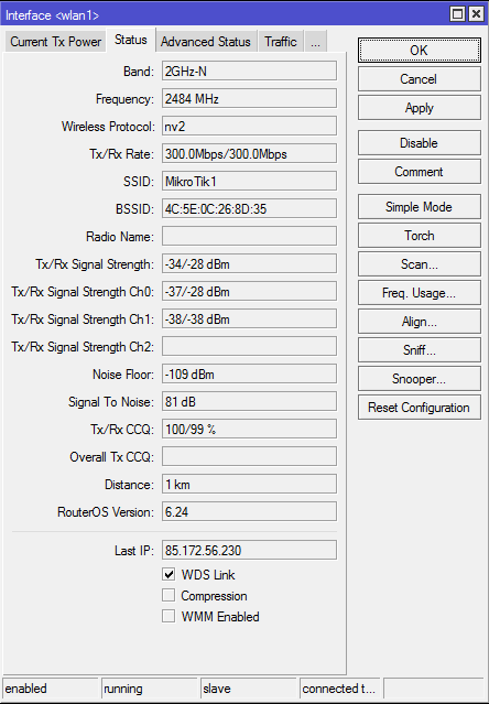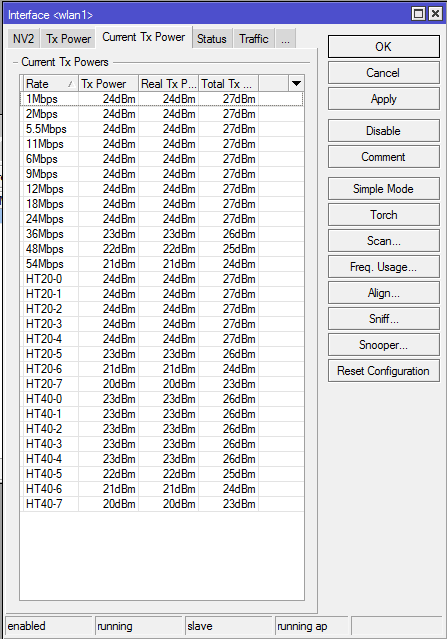 всем привет! прошу помощи, может кто знает в чём может быть проблема? есть два sxt lite2, расстояние между ними 180м без прямой видимости, мешают деревья и несколько перегородок железобетонных. настроил мостом по инструкции http://www.technotrade.com.ua/Articl...2013-09-08.php точки коннектятся но скорость при этом очень плохая и ccq очень слабый 0-40%, перепробовал уже наверно всё и мощность менял и антенны как только не крутил ничего не меняется! мощность ставил от 5 до 27, самая большая скорость сейчас на мощности 25dBm? выше или ниже скорость падает! что можно в таком случае сделать? или всё же так сильно деревья с перегородками влияют? и поделать уже ничего нельзя...