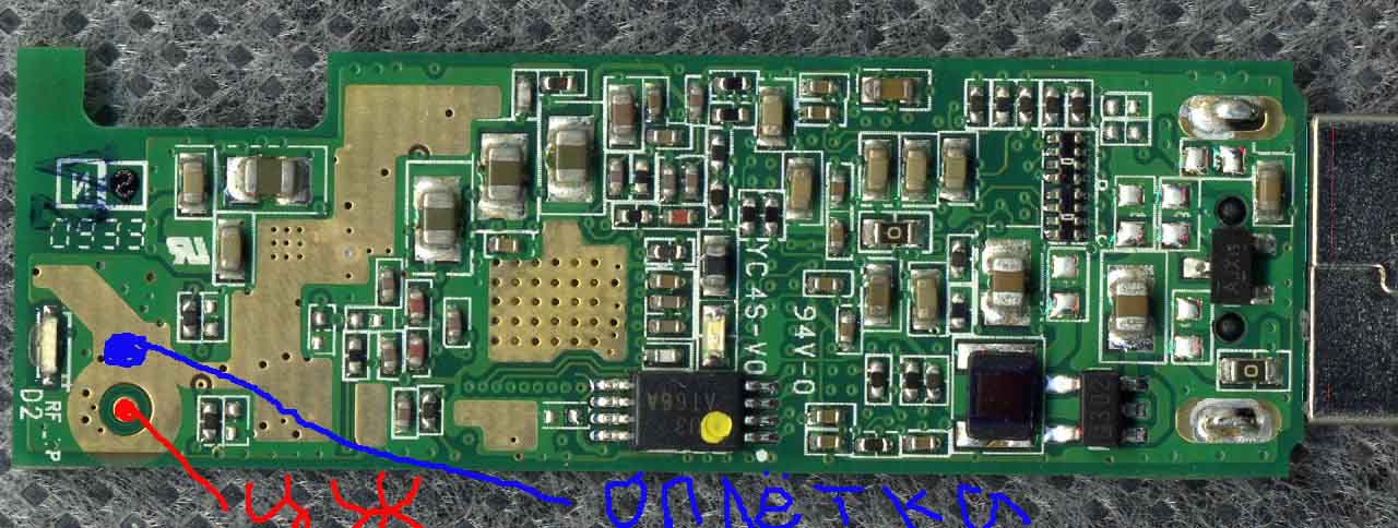 нашего форума, где можно задать дополнительные вопросы. Данный "свисток" находится внутри цифровой фоторамки Samsung SPF-105V. Мощности приема недостаточно – работает неустойчиво. Особенно долго получает IP-адрес. На первом снимке помеченная красным деталь - её прозвони, если это кондёр, то поверни на 90 град по стрелке. Если это катушка, то убери и поставь кондёр. На втором снимке подписал куда и что паять, прозвони, чтоб не было ошибки. Сигнал идёт со средней ноги коммутатора S408. |